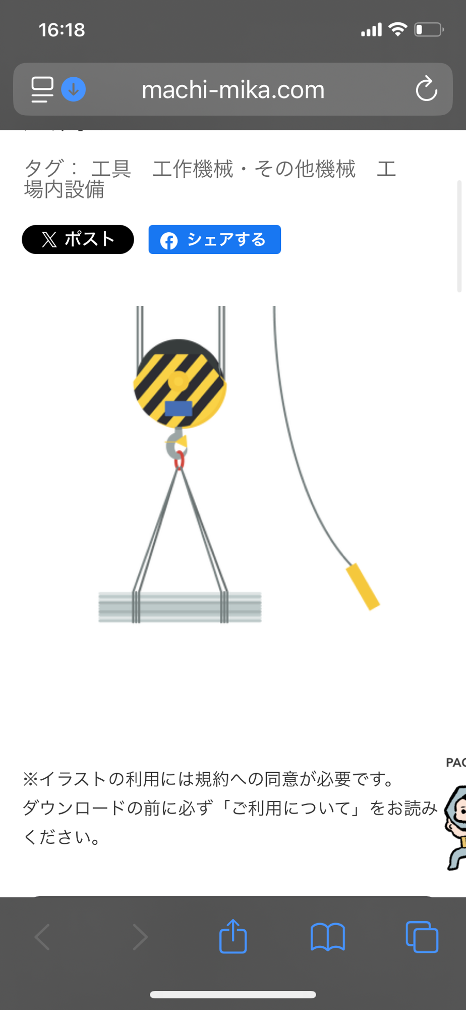 クレーンのフックに荷物を掛けて、荷物を持ち上げます。